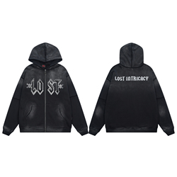 अमेरिकी सड़क फैशन ब्रांड हॉट स्टैम्पिंग जिपर हुडी