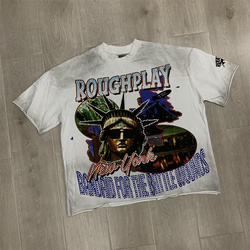 रफप्ले रॉकआउट टी-शर्ट सफेद स्याही प्रत्यक्ष स्प्रे लुभावनी विंटेज डायमंड शॉर्ट आस्तीन टी-शर्ट