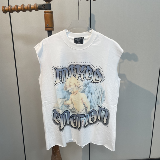मिश्रित भावना कपास मुद्रित बनियान डायमंड शॉर्ट आस्तीन टॉप के साथ