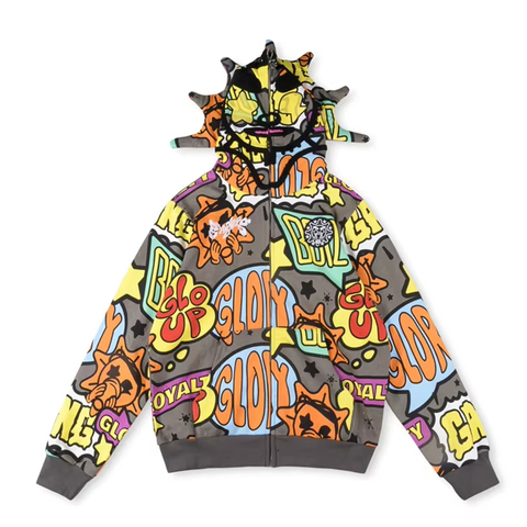 GLO GANG The Glory เสื้อฮู้ดมีซิปสำหรับผู้ชายพิมพ์ลายการ์ตูน