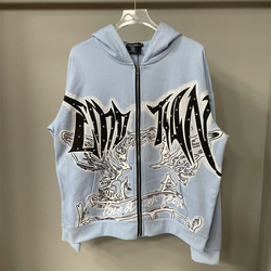 Amerikan sokak moda marka sıcak damgalama fermuarlı kapüşonlu kıyafet karmaşık toptan kaybetti